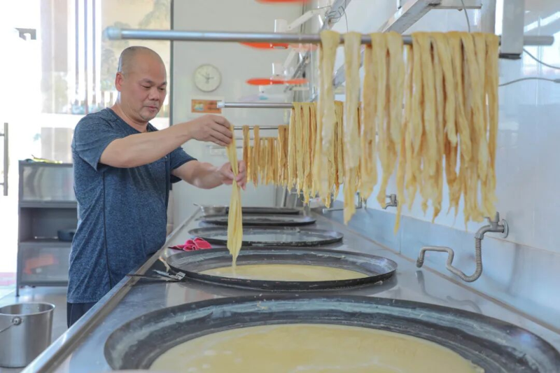 “北风干爽,光照适宜,是晒制腐竹的最佳时节。”黄淦辉介绍,潮湿季节需两日才能晒透的腐竹,在北风天里仅需一天半便可达到最佳干湿度,锁住豆香。“干这个活要经过泡、磨、煮、挑、晒五道工序,一道不能少,少一分耐心就少一分豆香。”这门老手艺,就这么靠着一代代人的坚守,伴着四季的风与晒,成了刻在万江人“舌尖”上的难忘滋味。