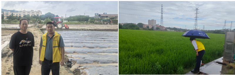 根据大灾应急部署会工作安排,东莞国寿财险农险团队迅速展开行动,一是通过短信、电话等方式发布预警信息,提醒农户提前做好防灾工作。二是针对重点风险区域,赶赴现场排查风险,指导农户进行疏通排水、加固田埂、池塘堤坝等防灾措施。