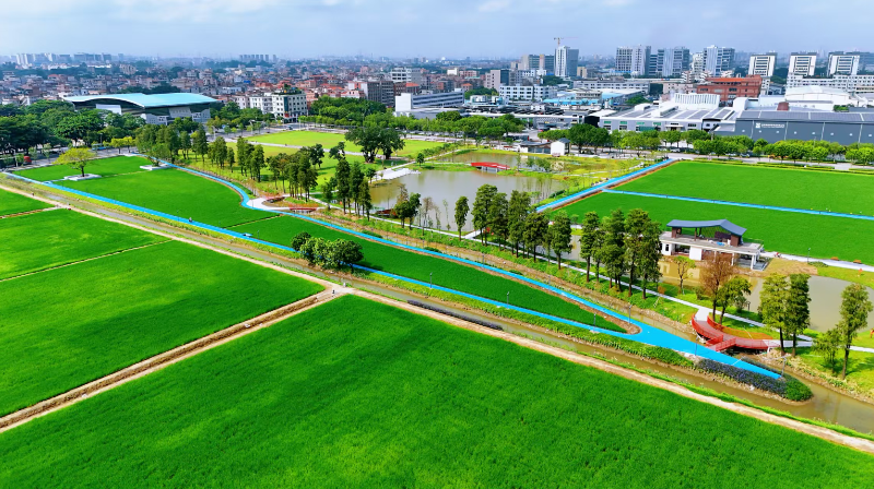 10月的东莞中堂镇潢涌村,既有产业发展的“硬核”底气,集体资产总额突破100亿元大关,成为继凤岗镇雁田村之后东莞第二个“百亿村”;更有田园风光的“诗意”画卷,漫步村内,560亩美丽田园生机勃勃:湖水映着蓝天,连片稻田穗影重重,田埂旁的绿植郁郁葱葱,不时有村民带着孩子在周边散步,打卡这幅“田美、景新、民欢”的乡村画卷。