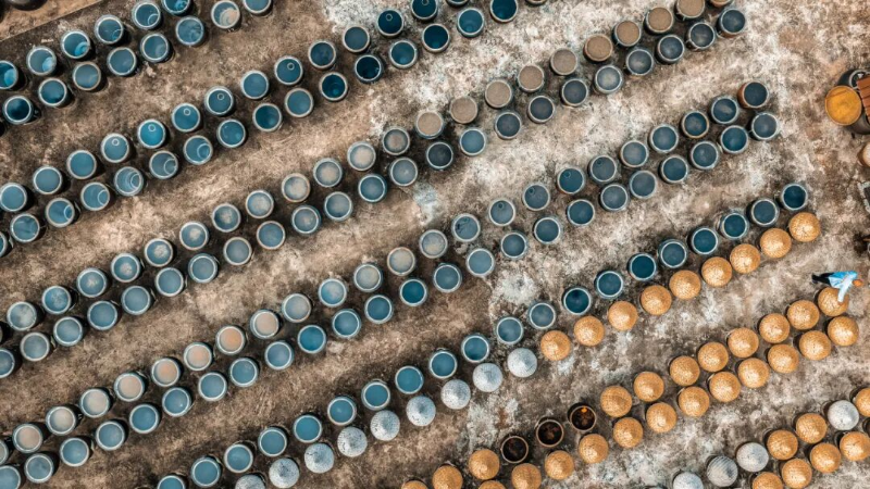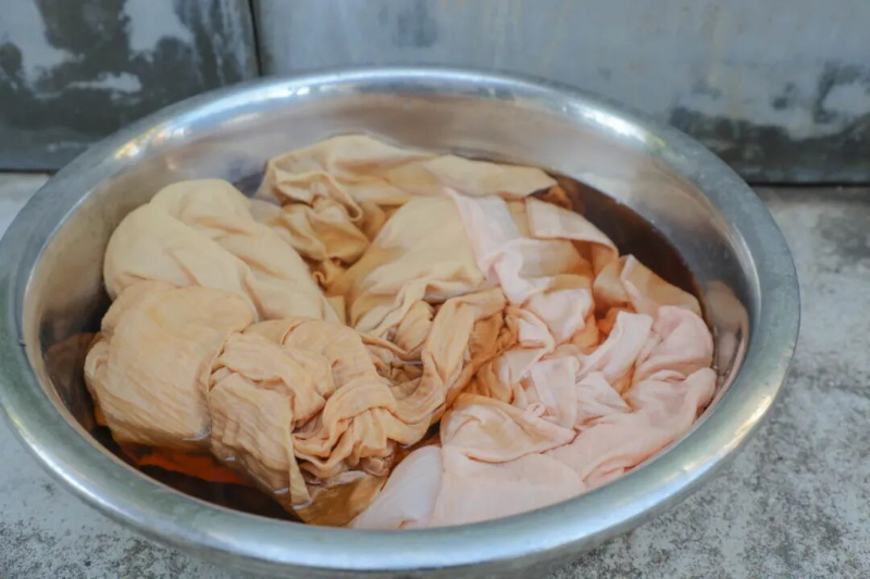 “北风天干燥通透,能让柿染色泽更快固着、更显鲜亮,也能避免织物发霉变质。”青青介绍,柿染需遵循“染一天、晒两天、反复染”的规律,晴朗干爽的北风天里,至少需反复染晒15天才能成器,若要得到众人喜爱的“深色大地系”,则需1至3个月的耐心等待,“因为阳光的强弱、北风的大小、浸泡的时间,都会让色泽呈现出细微差异,这就是自然与手艺结合的魅力。”