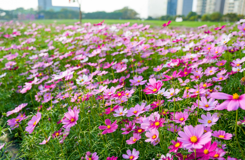 如今,观赏步道蜿蜒穿梭于缤纷花海之间,“等你,在沙田”等9个主题打卡点散落其间。你在闻香赏花的同时,随手一拍,便是属于沙田的春日大片。而这片浪漫花海,去年还是一片荒置杂草地。