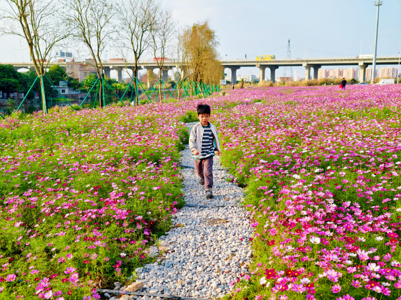 花海紧邻东莞港中央公园以及穗丰年湿地公园,驱车5分钟可达,打卡亲子游玩网红公园以及红树林栈道与河景落日,一站式解锁新春休闲时光。