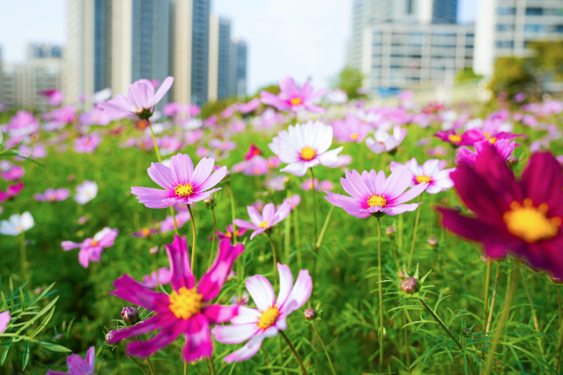 蹲下身细看,每片花瓣在阳光下泛着柔和的光泽,薄如蝉翼,透若轻纱。沿着蜿蜒步道前行,身旁是次第盛放的花海,抬头能看见整片蓝天,低头就能闻到淡淡的花香,每一步都踏在自然与诗意的交汇处。