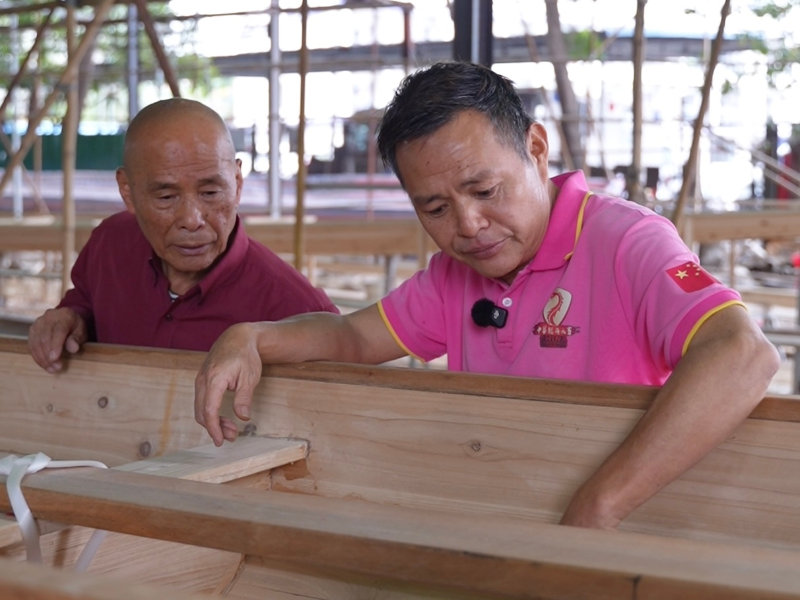 他不满足于只为爱好“烧钱”,而是有意识地将龙舟变成一份能“造血”的事业——俱乐部的年轻队员在训练之余担任龙舟研学和团建教练,既延续热爱,又获得收入;船厂师傅们也带起对造船感兴趣的年轻人,“传承下去,你肯定要更年轻的人”。