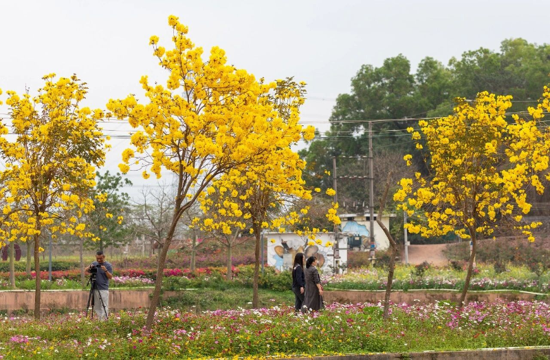 春风送暖,花开如画。近日,桥头荷花产业园七彩花田内,连片的黄花风铃木绚烂盛放,为斑斓的花海铺上了一层流动的“鎏金”,吸引了众多游人前来赴这场春日之约。