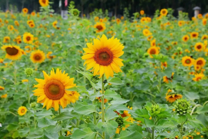 向日葵迎着暖阳热烈绽放,花盘硕大饱满,花瓣金黄明亮,如同一个个小太阳般耀眼夺目。它们挺拔向上、身姿昂扬,在春风中舒展着最美的姿态,尽情追逐着阳光。耀眼的金黄与蓝天相映,与绿意相融,每一朵都开得热烈又灿烂,远远望去,满目皆是朝气与希望,为春日的东坑增添了满满的活力与治愈感。