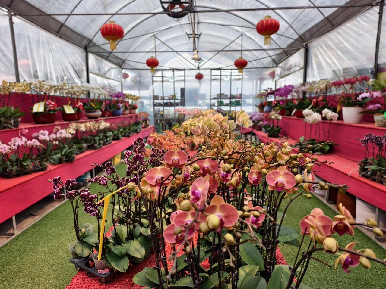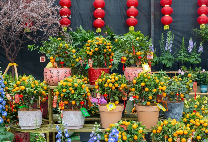 “鸿运当头”“步步高升”“金玉满堂”......各式年宵花搭配着喜庆的“花名”,满眼都是看得见的“年味”。寓意幸福美满的蝴蝶兰、金灿灿的年桔、大展宏图的红掌、健康长寿的万寿菊等各类年宵花长势良好,花农正忙着打理造型,迎接销售高峰。