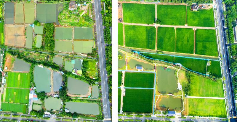 作为广东省“百县千镇万村高质量发展工程”首批典型村,潢涌村自2023年10月启动美丽田园建设以来,从破解农田零散、荒地闲置难题入手,以“凤凰田园,鱼米之乡”为主题,分三期打造集现代种植、农耕体验、文旅融合于一体的都市现代农业样板。