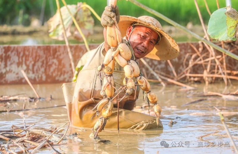 “我们每天的采挖量,都是根据前一天的订单来安排的。”为了保证莲藕新鲜的口感,藕农们有自己的“时间表”:每天下午四点下塘采收,次日清晨便将清洗干净的莲藕运往周边市场,为市民餐桌送上新鲜的当季食材。