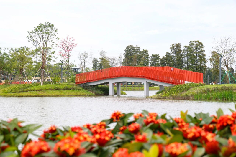如今,位于潢涌大道与北王路之间的美丽田园,由曾经的零散农田、鱼塘和荒地变化而来。舒适的人行道、景观桥,与稻香、花香相映,成了受人喜爱的网红休闲打卡点。