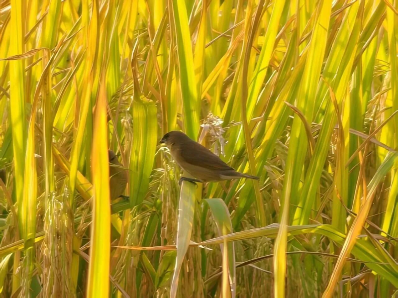 金秋时节,周屋稻田如一片金色绿洲,藏着冬日的温暖与韵味。漫步栈道,可看农机在田间忙碌作业;金黄的稻浪翻滚,小鸟们在田间欢快地觅食,时而低飞,时而停驻,为这幅丰收画卷增添了几分灵动与生机。