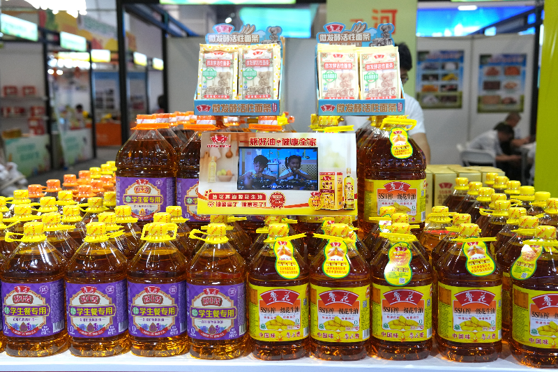 展台上,学生餐专用油、古香花生油等餐饮专用系列,鲁花的产品已覆盖家庭、餐饮、校园、企业团餐等多个场景。油酸高、α亚麻酸人体必需脂肪酸含量丰富、非转基因、零反式脂肪酸等标签,成为其叩开健康消费市场的“品质身份证”。