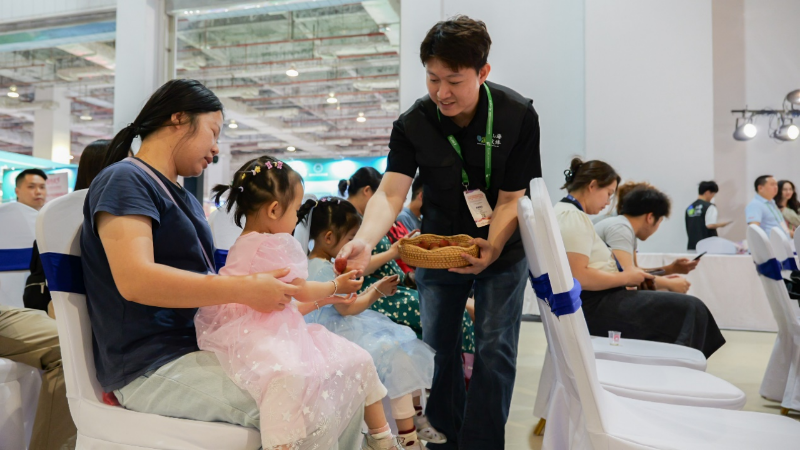 推介会上,鲜甜多汁的“桂花香”品种高州荔枝与创新打造的贵妃荔枝冰淇淋现场派发品鉴,赢得与会客商的一致好评。而在距离推介会不远处的茂名馆,萌趣十足的“糖小罂”“荔小叶”荔枝文创周边成为全场人气焦点。“妈妈,我想把这个荔枝玩偶买回家。”小朋友的一句童言稚语,恰是茂名荔枝正以更年轻、更时尚的姿态走进千家万户的生动写照。