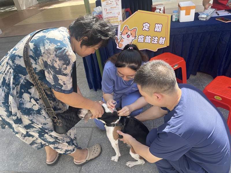 与此同时,石龙农业科技特派员(轻骑兵)兽医分队的队员们耐心指导市民申领电子免疫证,帮助他们掌握便捷的线上登记操作。专业兽医人员则在现场为犬猫进行健康评估,在确认宠物无异常后,为其注射狂犬病疫苗。此次活动共为30只犬猫注射狂犬病疫苗,派发宣传单张300多份,实现“宣传+服务”无缝衔接,切实打通便民服务“最后一公里”。