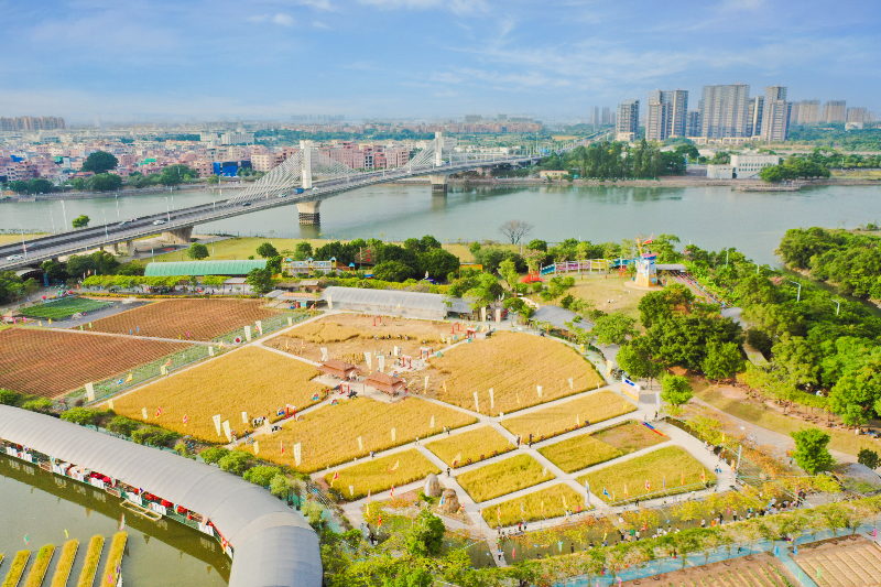 梨川大桥下,金黄稻田熟。近日,东城东江印象园的第六届丰收节活动在市民的欢声笑语中拉开了序幕。