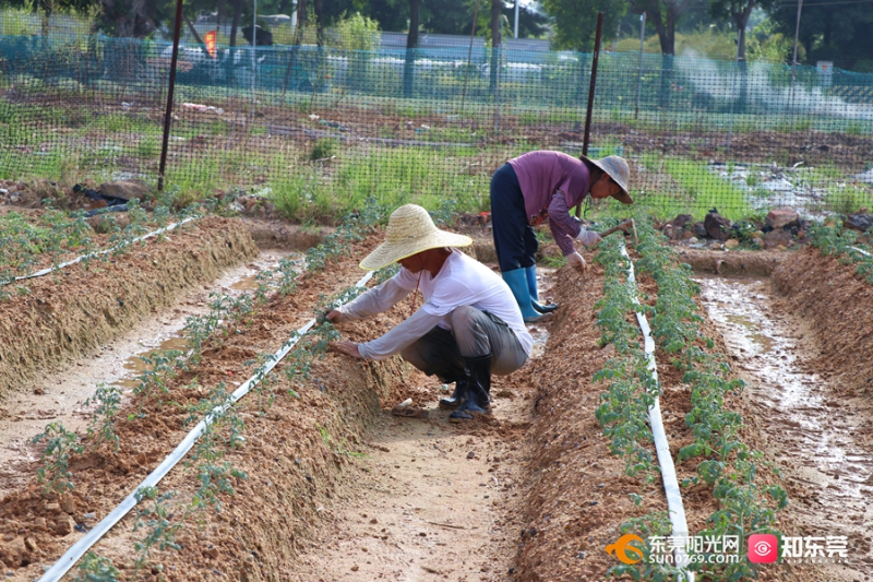 在大朗镇蔡边蔬菜种植基地,已经有小部分草莓秧苗栽种完成,嫩绿的秧苗整齐地挺立在田垄上享受着阳光;另一边,果农们正忙碌地为草莓田引水灌溉,以保障草莓植株能获得充足水分,满足其生长需求,促进草莓良好生长发育。