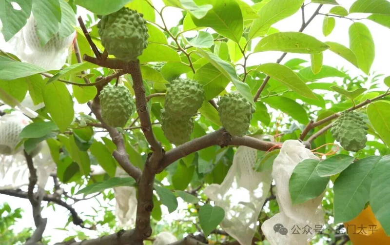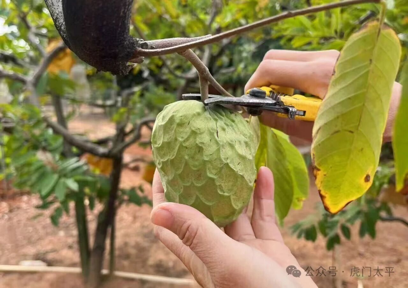 林记果园位于北栅社区,2021年获评“东莞市家庭农场”,拥有30亩水果种植基地,主要种植荔枝和番荔枝,其中AP番荔枝凭借清甜口感、丰富营养,成为虎门本土特色果品。