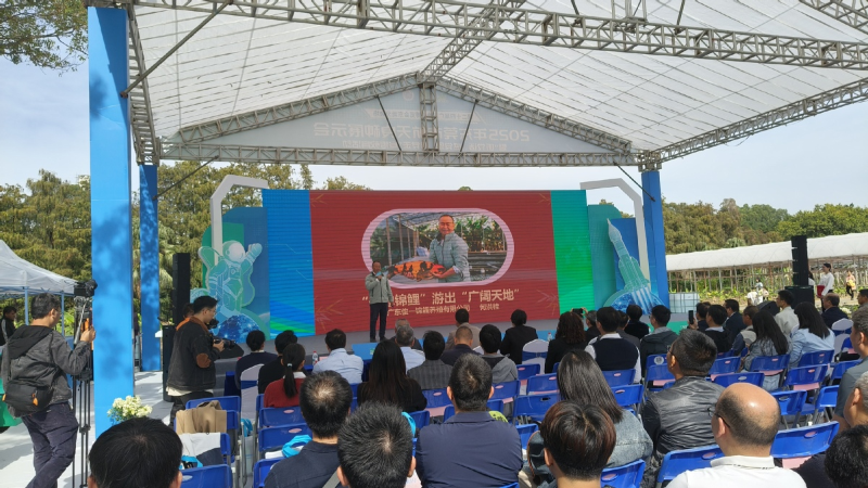 11月28日,2025年东莞市航天良种展示会上,锦鲤展区围着一圈人。广东俊一锦鲤养殖有限公司负责人何洪桂站在台上宣讲,他身后的大屏幕上,一尾尾色彩斑斓的锦鲤在清澈水中舒展身姿,红白纹路如霞似锦,墨色斑点似画如诗。“这是我们东莞自主培育的‘中国彩鲤’,颜色鲜艳、花纹漂亮、抗病能力强、耐寒耐热,比进口品种还长寿,能活到七八十年!”何洪桂的话音刚落,台下便响起阵阵掌声。