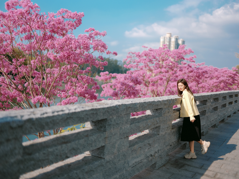 只是紫花风铃木的美,向来短暂。这几周,是它一年中最盛大的亮相。花开有时,莫负春光。趁着东江风暖,趁着花事正好,来走一走吧。