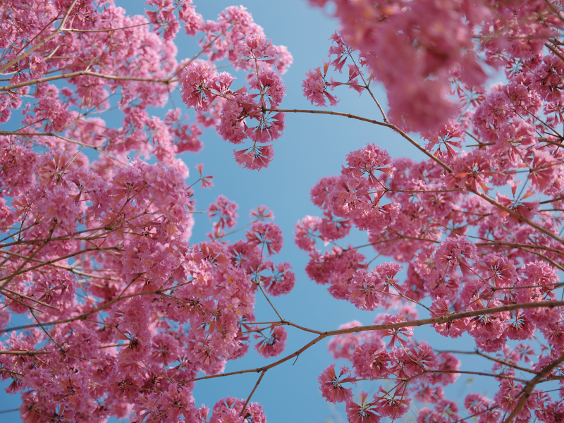 与北方尚在料峭春寒中等待第一枝迎春花不同,岭南的春天总是来得热烈而慷慨。紫花风铃木正以一种温柔而蓬勃的姿态,将整树繁花一齐捧出,仿佛要把一整个春天都倾倒在行人的头顶。
